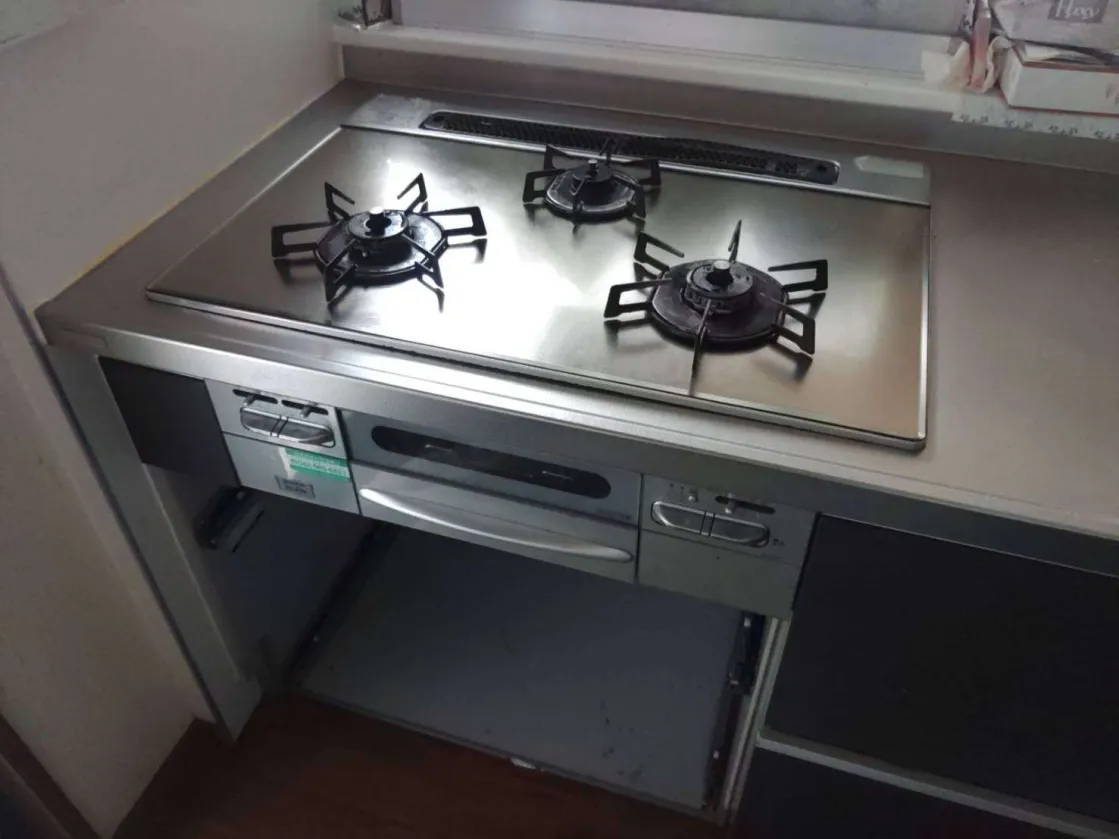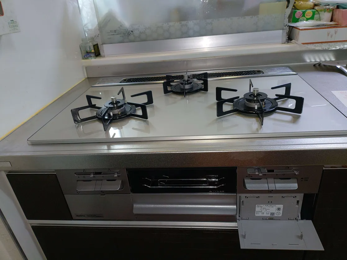 施工前のビルトインコンロがガラストップだったので、バーナー以外の所はとても綺麗に保たれていますね。