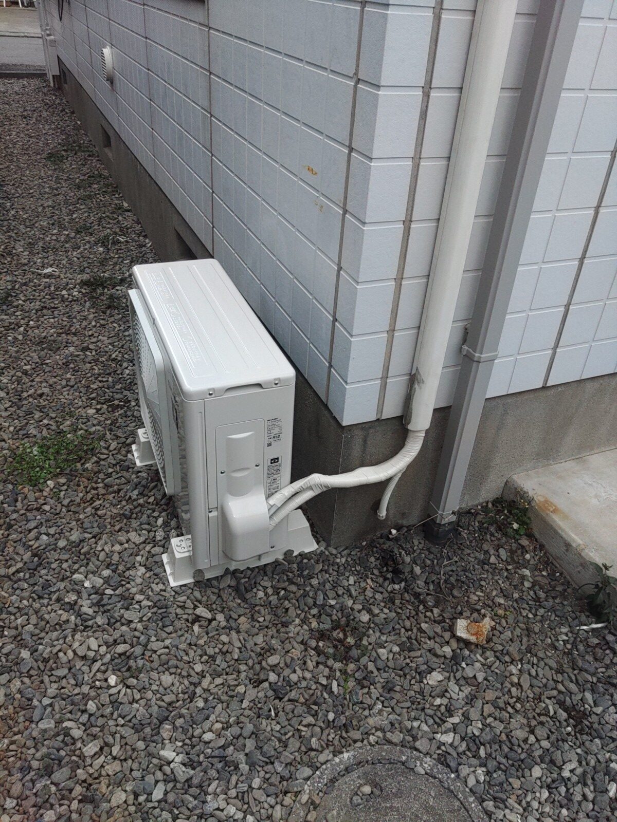 現場に着いて確認してみると、エアコン本体は無く、