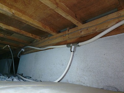 こちらの施工は、床下に配管されているガス管から分岐します。