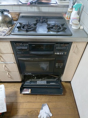 さて、工事としましては、ビルトインコンロの撤去はもちろんですが、オーブンも撤去する必要があります。