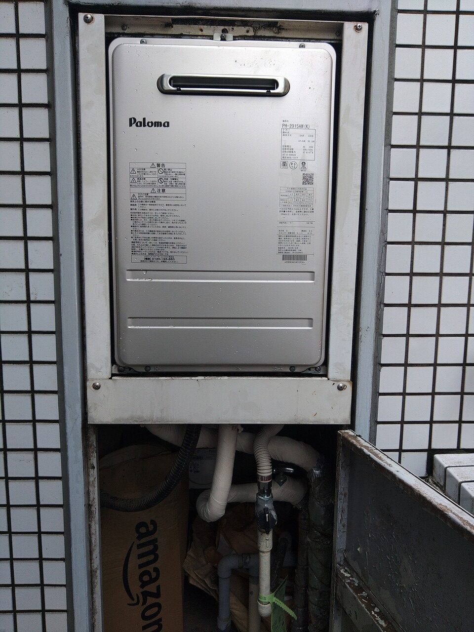 今回の交換工事では同等機種での交換でしたがメーカーがリンナイからパロマへと変わりましたので、少し取付位置をずらして取り付けられるように加工して交換しました。