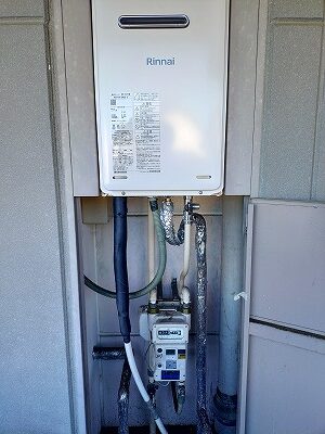 通常であれば、この給湯器の交換工事時間は1時間から1時間半程度で終わりますが今回の作業は多少やり替えに難があったり